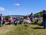 Pause café avec viennoiseries à Epiais Rhus. Nous avons été accueillis par Chris qui nous a préparé sur la place de l'église un accueil exceptionnel. Une pensée pour Eric. Un grand merci à elle.